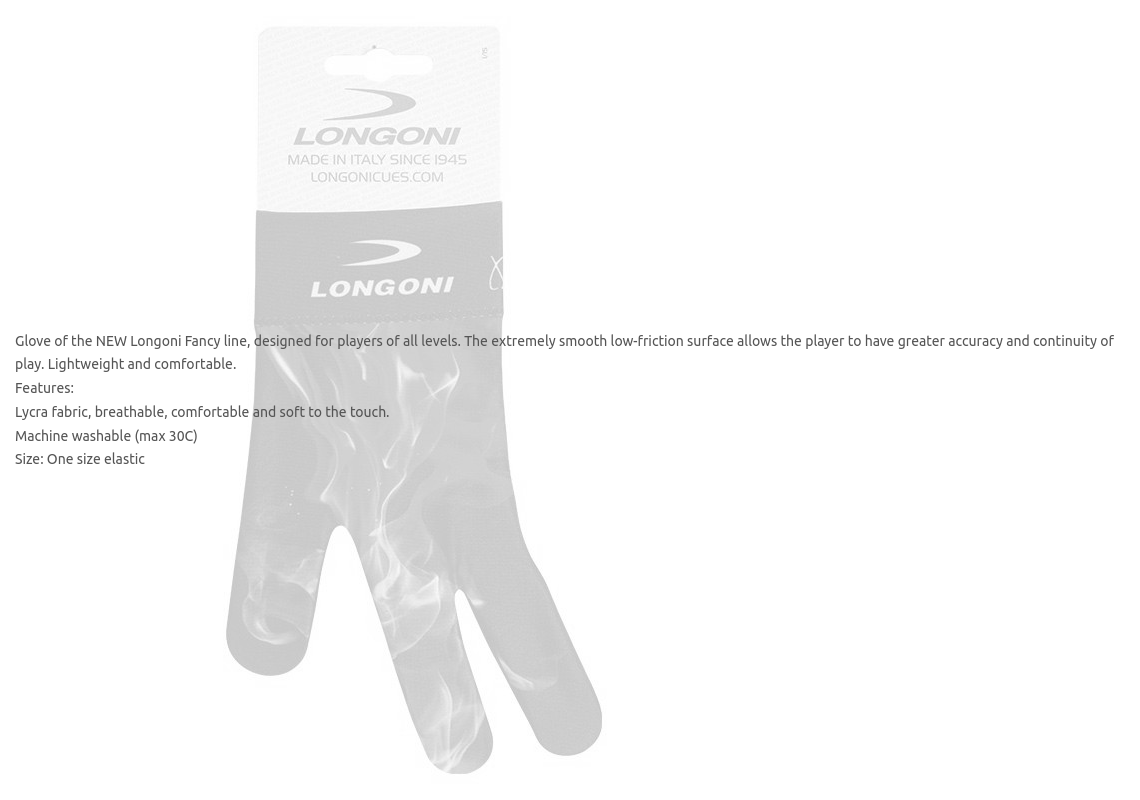 Glove of the NEW Longoni Fancy line, designed for players of all levels. The extremely smooth low-friction surface allows the player to have greater accuracy and continuity of play. Lightweight and comfortable.