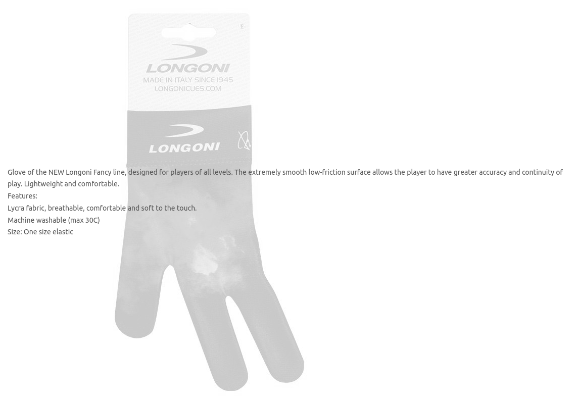 Glove of the NEW Longoni Fancy line, designed for players of all levels. The extremely smooth low-friction surface allows the player to have greater accuracy and continuity of play. Lightweight and comfortable.
