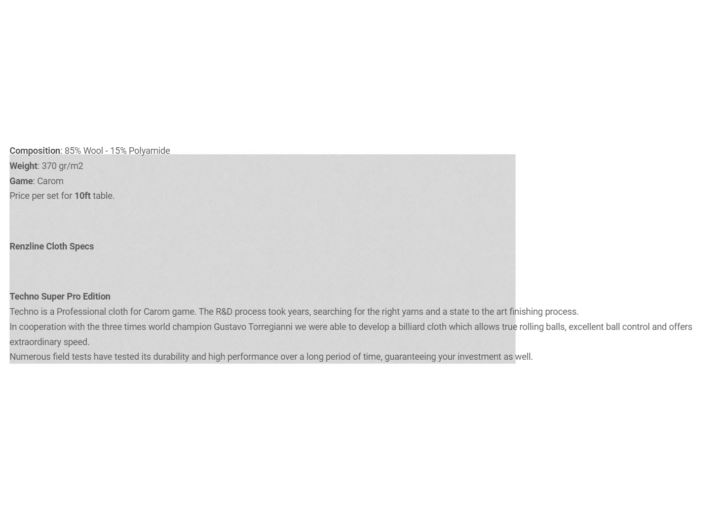 Techno is a Professional cloth for Carom game. The R&D process took years, searching for the right yarns and a state to the art finishing process.