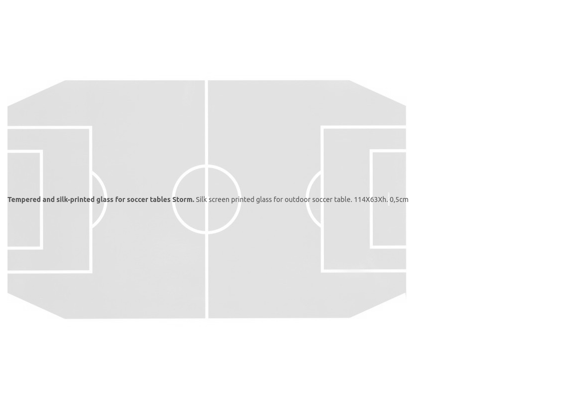 Tempered and silk-printed glass for soccer tables Storm. Silk screen printed glass for outdoor soccer table. 114X63Xh. 0,5cm
