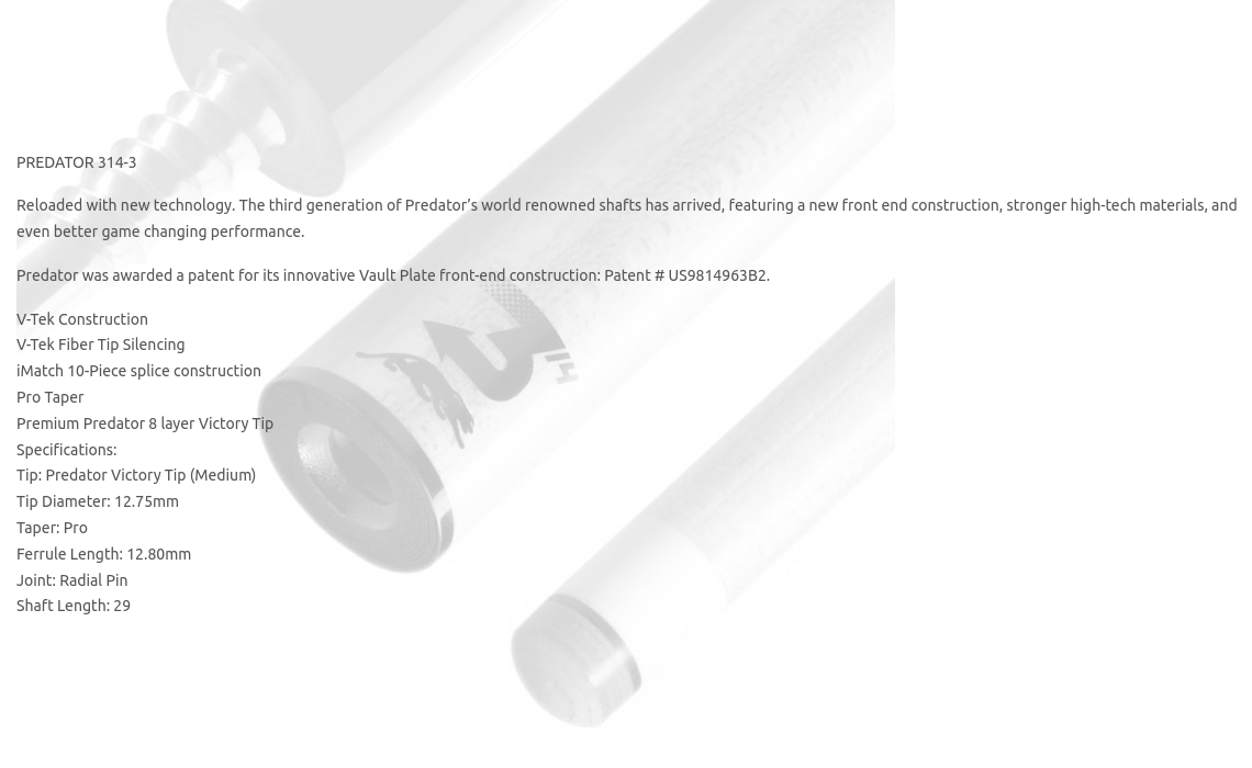 Reloaded with new technology. The third generation of Predator’s world renowned shafts has arrived, featuring a new front end construction, stronger high-tech materials, and even better game changing performance.