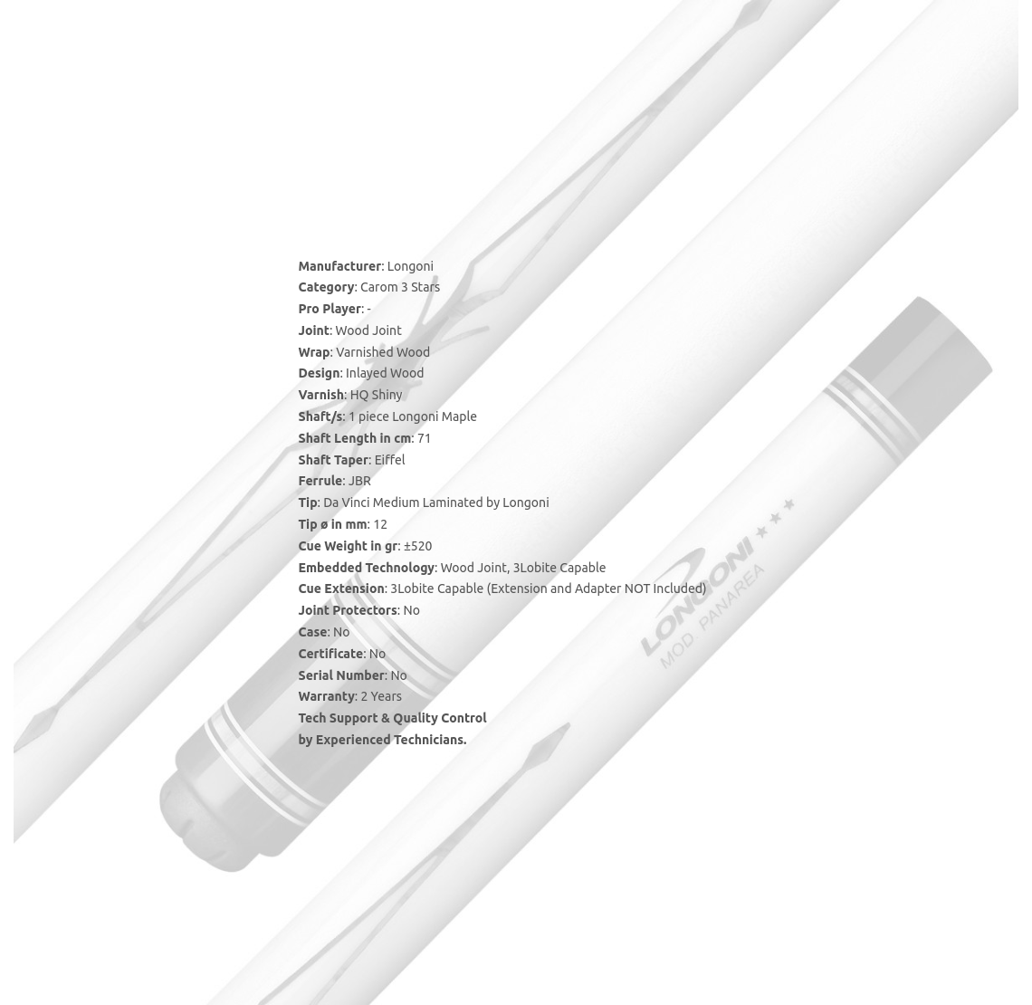 Shaft/s: 1 piece Longoni Maple
