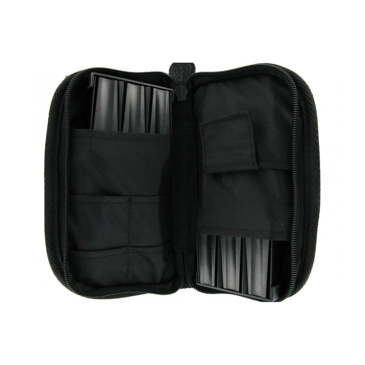 Hard leather dart case with 2 complete set of darts. The case can be closed with a zipper.