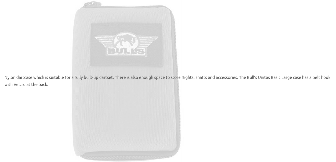 Nylon dartcase which is suitable for a fully built-up dartset. There is also enough space to store flights, shafts and accessories. The Bull’s Unitas Basic Large case has a belt hook with Velcro at the back.