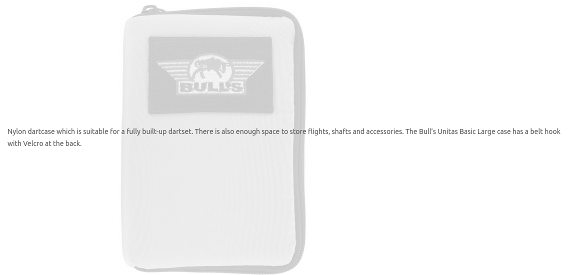 Nylon dartcase which is suitable for a fully built-up dartset. There is also enough space to store flights, shafts and accessories. The Bull’s Unitas Basic Large case has a belt hook with Velcro at the back.