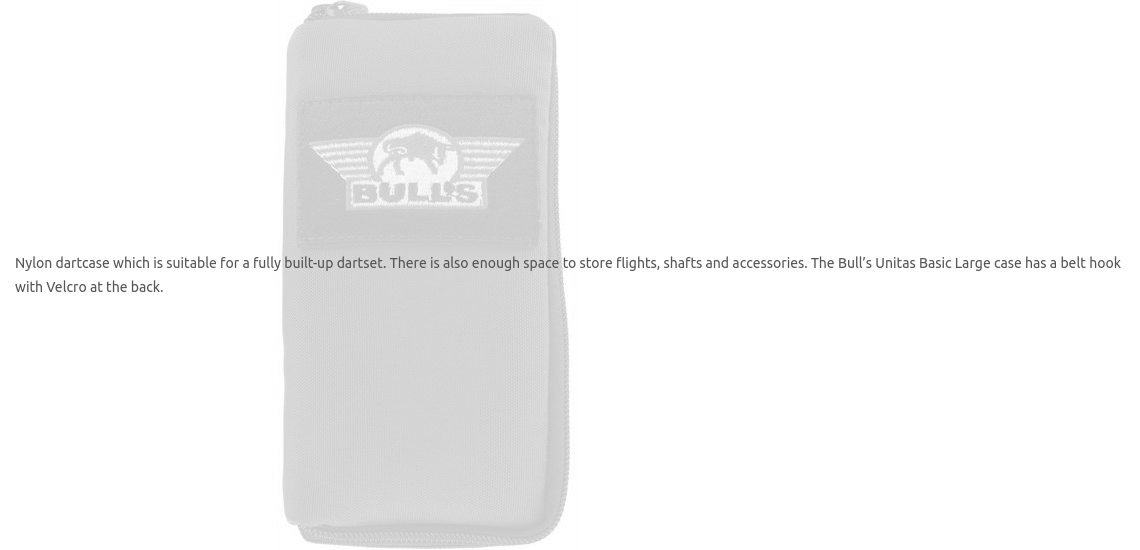 Nylon dartcase which is suitable for a fully built-up dartset. There is also enough space to store flights, shafts and accessories. The Bull’s Unitas Basic Large case has a belt hook with Velcro at the back.