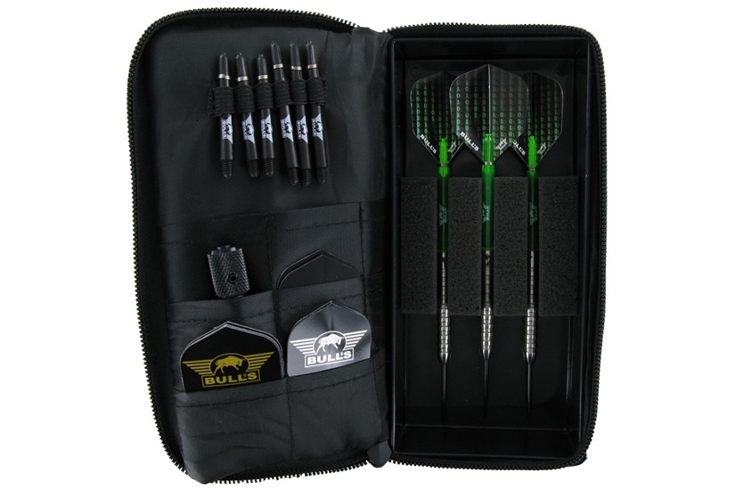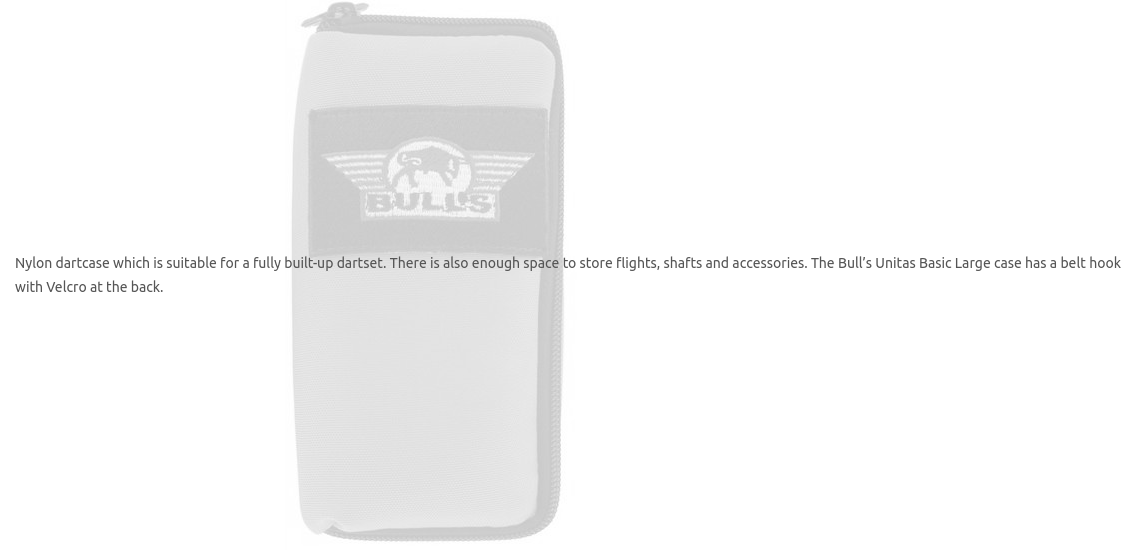 Nylon dartcase which is suitable for a fully built-up dartset. There is also enough space to store flights, shafts and accessories. The Bull’s Unitas Basic Large case has a belt hook with Velcro at the back.