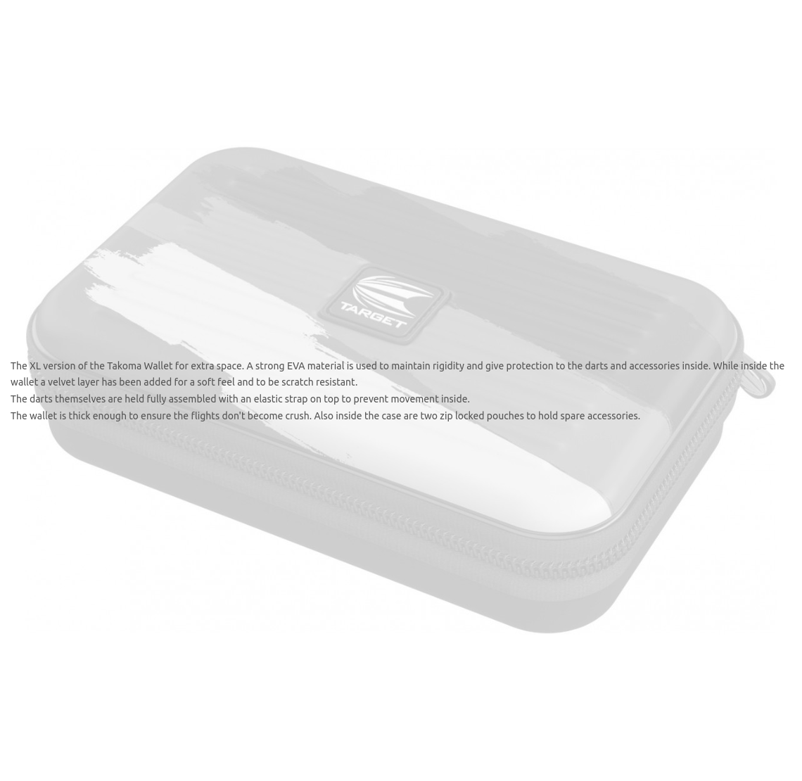 The XL version of the Takoma Wallet for extra space. A strong EVA material is used to maintain rigidity and give protection to the darts and accessories inside. While inside the wallet a velvet layer has been added for a soft feel and to be scratch resistant.