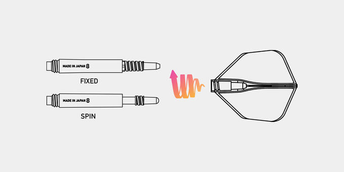 Pick `N` Mix: Whether you want a fixed or spin shaft-system, the 8 Flight system only features interchangeable shaft capabilities, meaning you can mix up your shaft set-up without needing a new flight. Both shafts have identical screw tight mechanisms to secure the flight to the shaft, ensuring no accidental flight drop-outs during play.