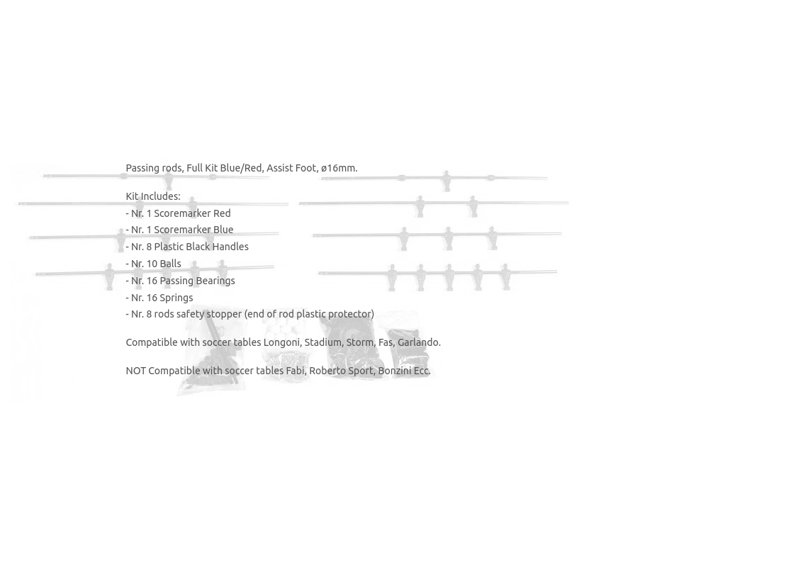 Compatible with soccer tables Longoni, Stadium, Storm, Fas, Garlando.