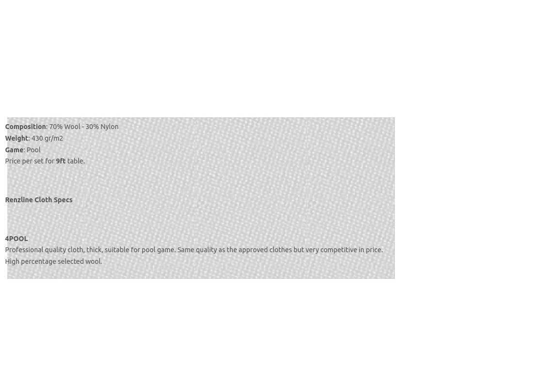 Professional quality cloth, thick, suitable for pool game. Same quality as the approved clothes but very competitive in price.