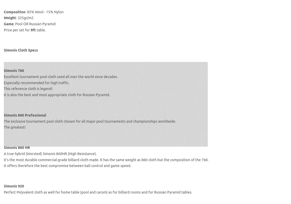 Perfect Polyvalent cloth as well for home table (pool and carom) as for billiard rooms and for Russian Pyramid tables.