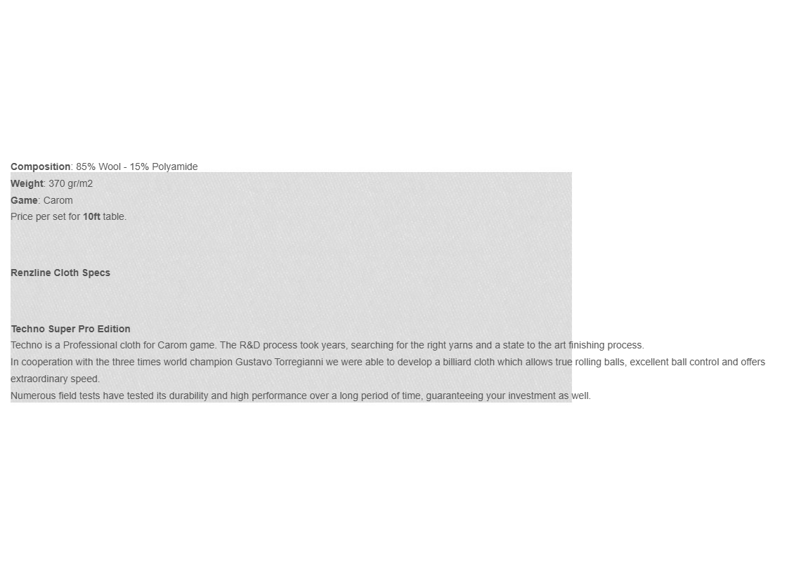 Techno is a Professional cloth for Carom game. The R&D process took years, searching for the right yarns and a state to the art finishing process.