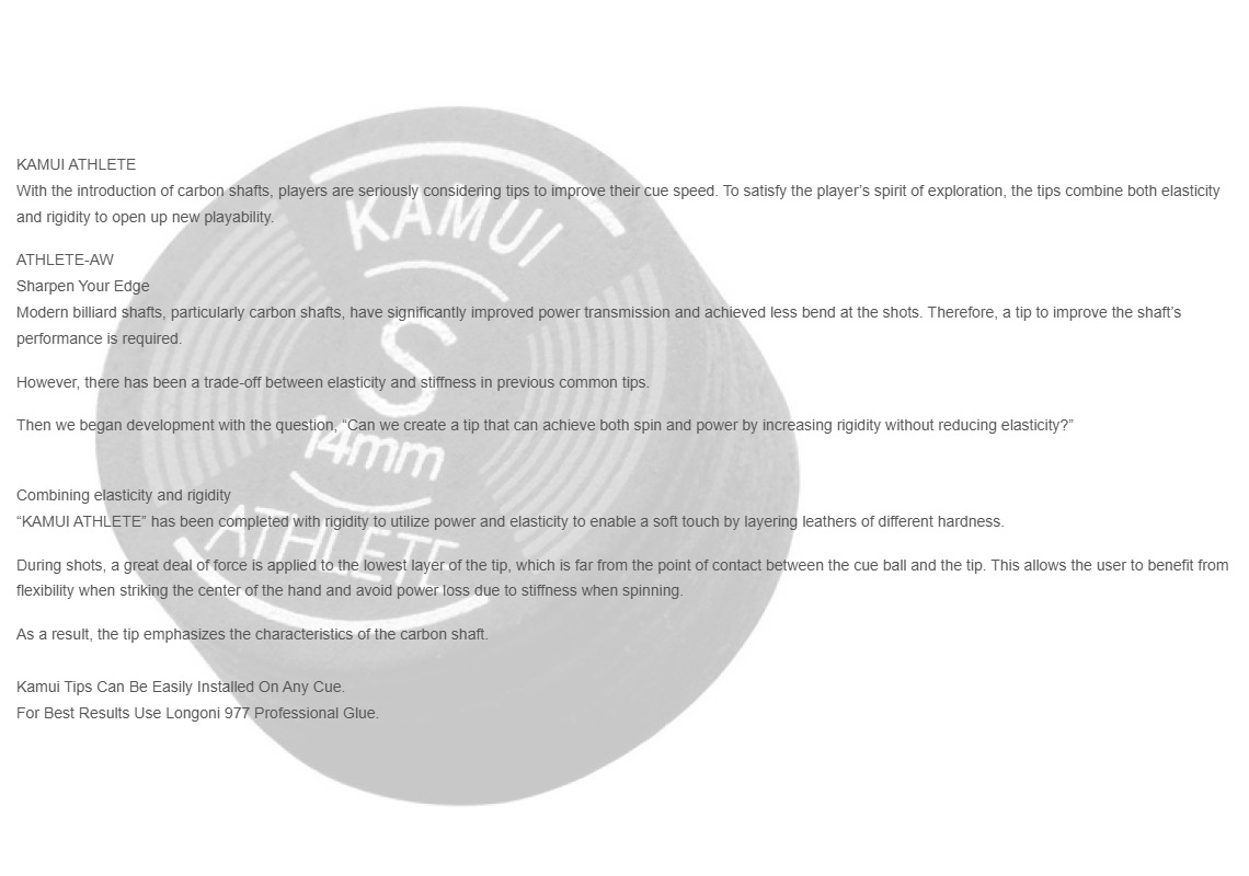 With the introduction of carbon shafts, players are seriously considering tips to improve their cue speed. To satisfy the player’s spirit of exploration, the tips combine both elasticity and rigidity to open up new playability.