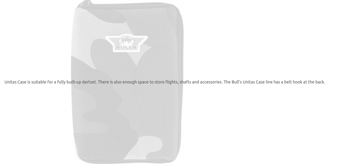 Unitas Case is suitable for a fully built-up dartset. There is also enough space to store flights, shafts and accessories. The Bull’s Unitas Case line has a belt hook at the back.