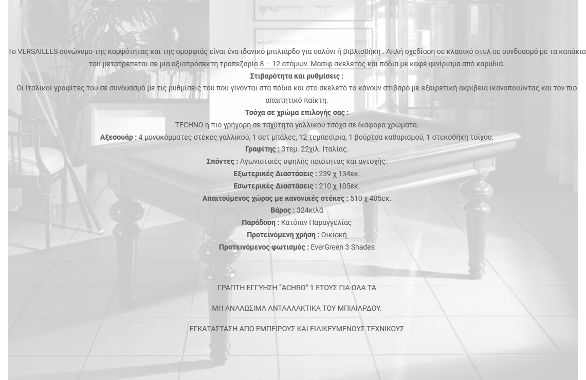 We may be the only company in Greece's Billiards industry that consistently honors warranty terms with professionalism and responsibility.