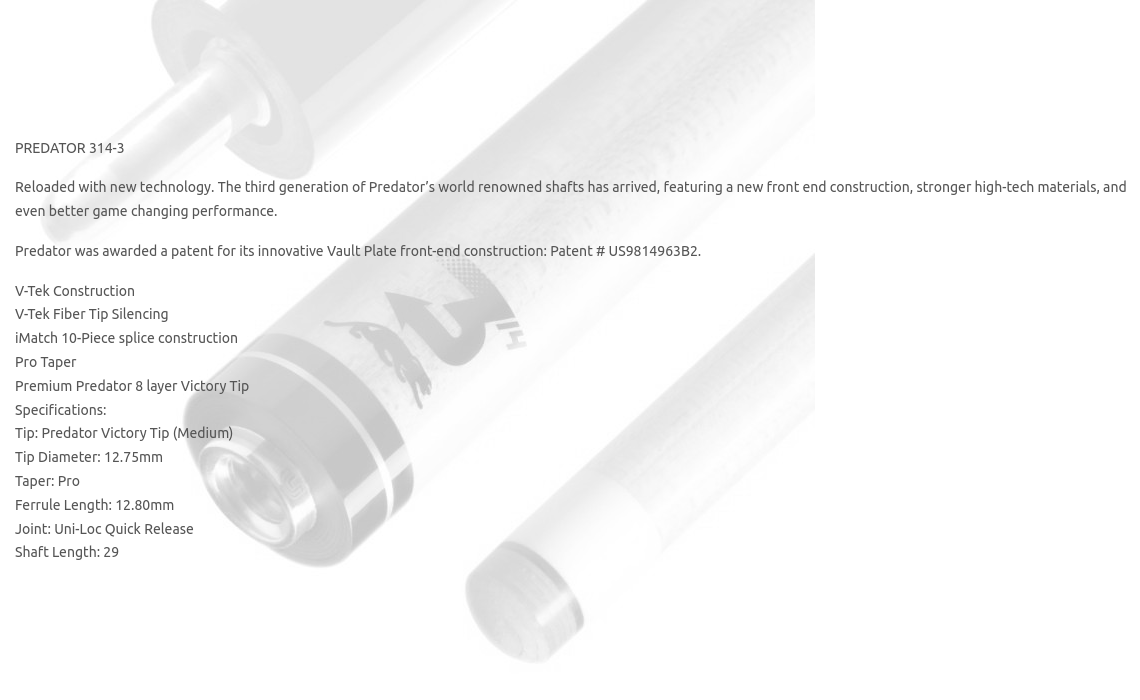 Reloaded with new technology. The third generation of Predator’s world renowned shafts has arrived, featuring a new front end construction, stronger high-tech materials, and even better game changing performance.