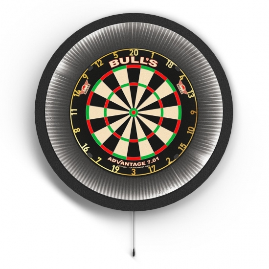 Introducing the Bull’s Lumo XL Lighting Surround, the ultimate evolution in dartboard lighting technology. Designed as the next-generation upgrade from the popular Lumo 2, the Lumo XL offers both exceptional illumination and expanded wall protection. With a 70 cm diameter, it provides an impressive 11 cm more coverage than its predecessor, giving players the confidence to throw without worrying about wall damage.