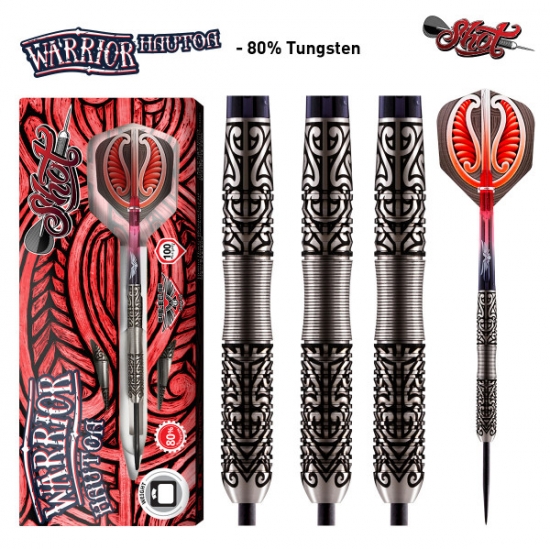 Warrior Hautoa 80% 22g Barrels: 80% Tungsten Length: 50mm Diameter: 6,7mm Flights: Shot Shafts: Shot Grip: Ringed, Shark, Phantom Level: Advanced Level