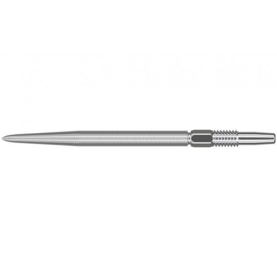 Target's silver Swiss nano point features a nano grip along the length of the point for ultimate finger grip. The point creates the look and feel of a one-piece dart for reduced flight deflection.