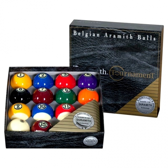 The Aramith Tournament set features the Duramith™ technology with its hi-tech engineered molecular structure enhancing drastically the longevity of the balls while minimizing significantly table cloth wear. With a life-time that exceeds up to 8 times that of the average polyester and phenol-like resins, reaching easily up to 40 years in residential use, Aramith ball sets are the logical choice for both the trade and the player.